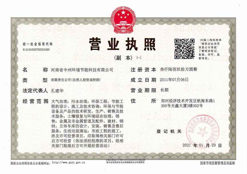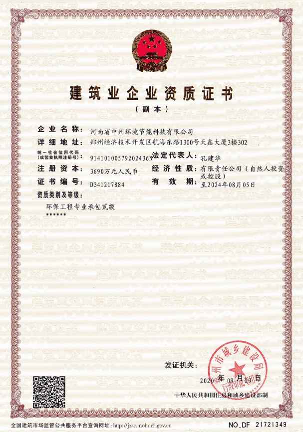 河南省中州环境节能科技有限公司,成立于2011年,位于河南省郑州市,注册资金人民币3690万元,是一家专业从事环保科技的高新技术企业,主要经营干法脱硫、脱硝、除尘等大气污染治理工程和脱盐水、中水回用、污水零排放等水处理工程,现已拥有专利五十多项,并拥有二级施工资质与乙级设计资质,是河南省科技厅重点支持的环保技术研发单位,是郑州市节能科技园重点扶持的新型高科技环保企业,是河南省AAA信用企业。