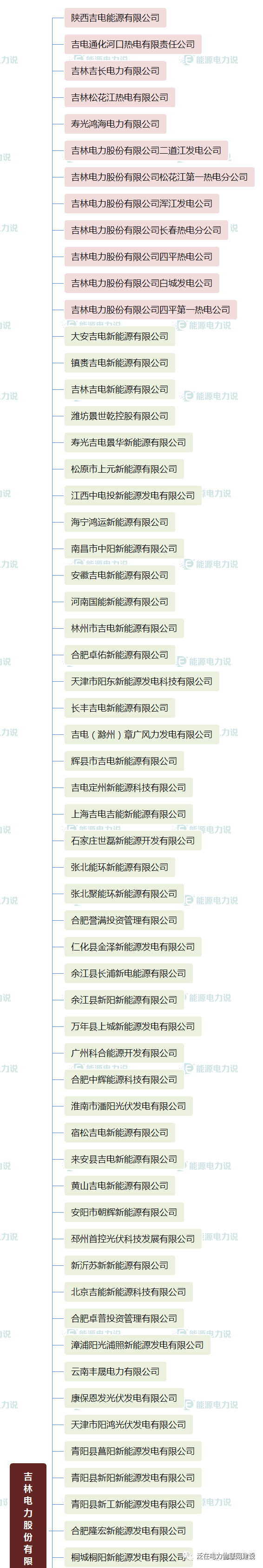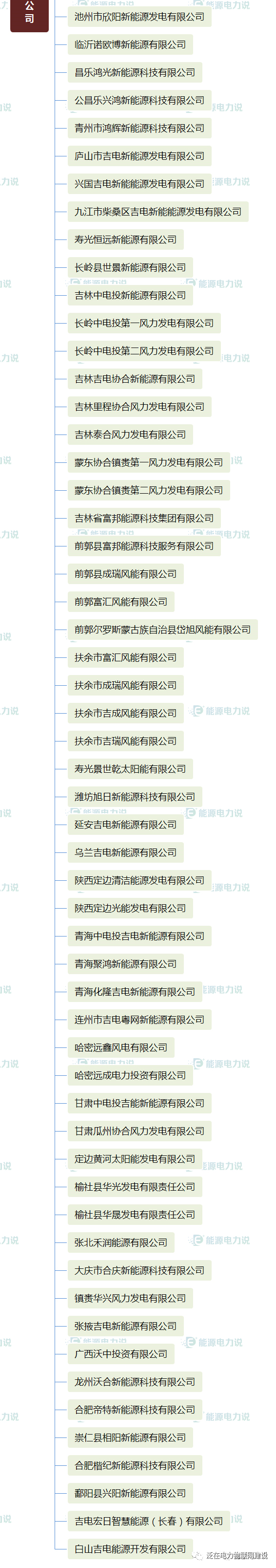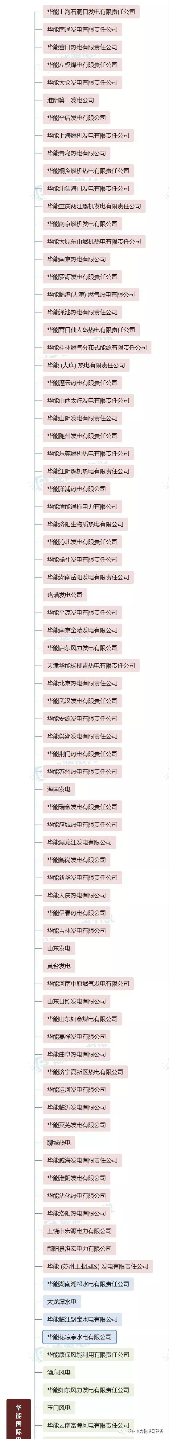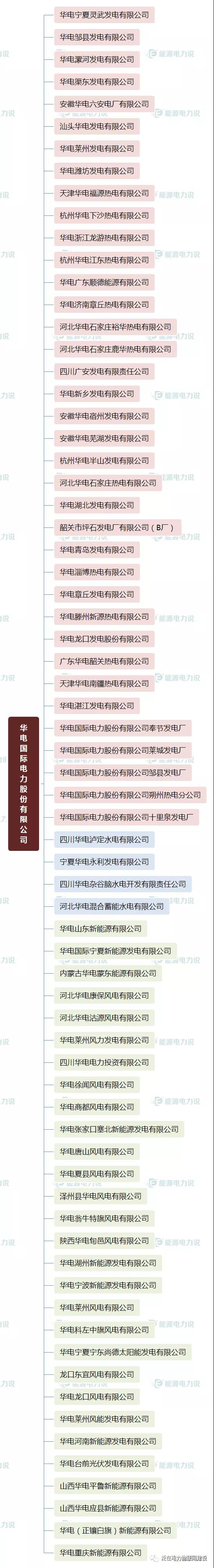 根据公开信息,华能集团共统计出388家发电公司,其中火电129家,水电35家,光伏风电等新能源220家,核电4家。具体情况如下:(▅为火电公司 ▅为水电公司 ▅为新能源发电公司)